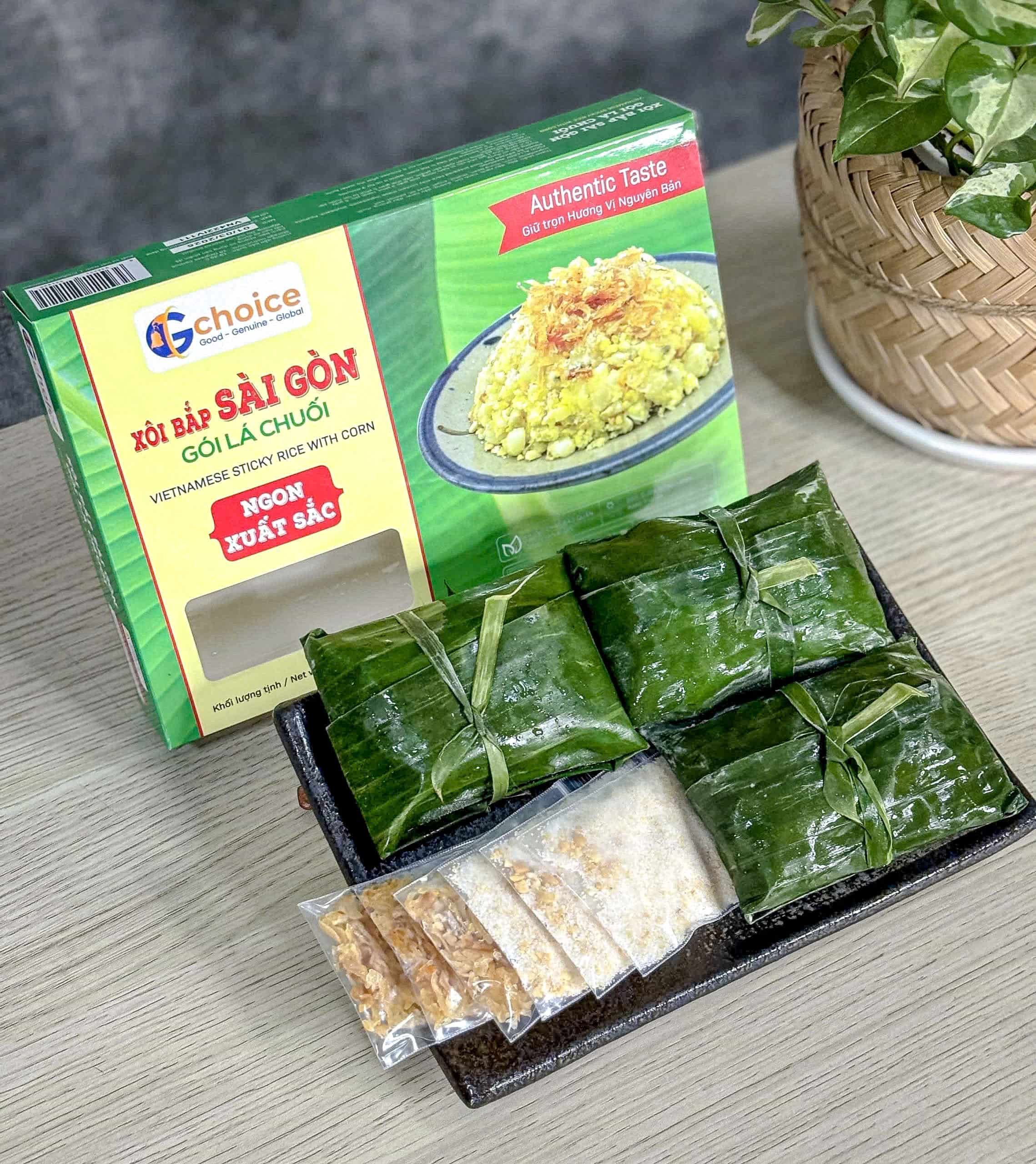 VIETNAMESE STICKY CORN WITH MUNG BEANS WRAPPED IN BANANA LEAF 450G